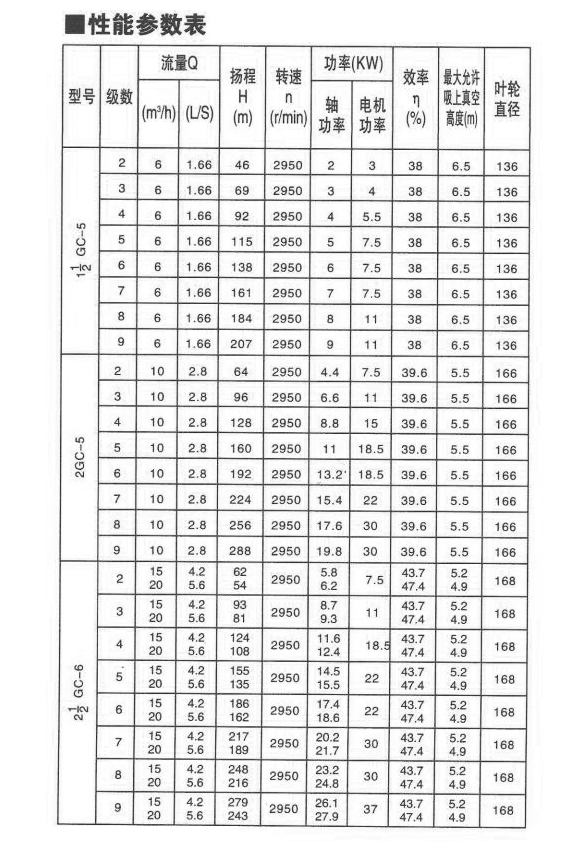GC型水泵為(wéi)單吸多級離(li)心泵,可輸送(sòng)最高溫度為(wéi)110℃清水或物理(li)化學性質類(lèi)似清水的液(yè)體之用,适用(yòng)于鍋爐給水(shui)㊙️、工廠、城市及(ji)礦山井下提(ti)水排水。揚程(chéng)為🤩46米至476米,流(liú)量為6米3/小時(shi)一55米3/小時。